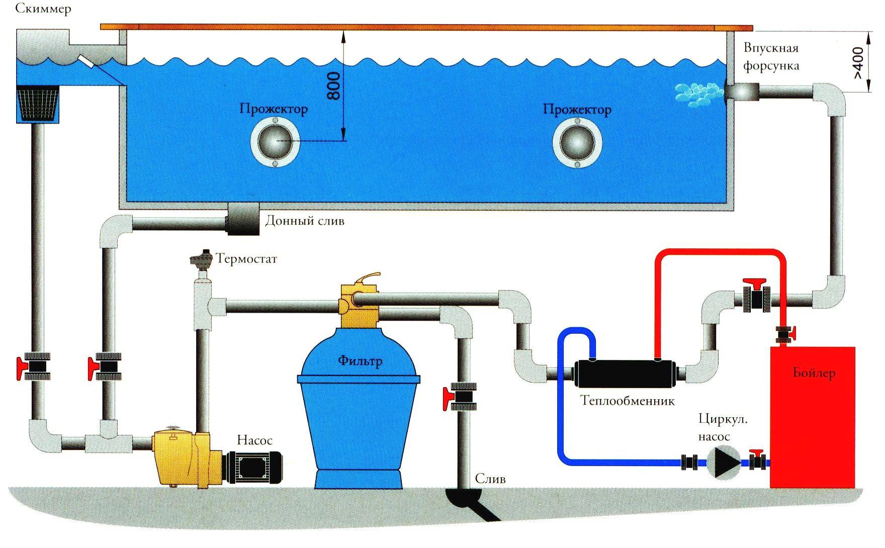 Кроме финишной отделки, по окончании строительства бассейна нужно будет установить оборудование по подаче и фильтрации воды, её очистке и подогреву. Только после этого можно будет считать процесс его возведения законченным.