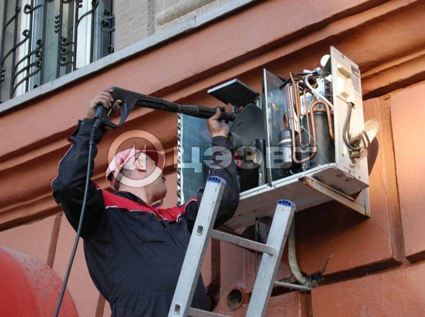 Самая трудная задача в самостоятельной очистке кондиционера – это расположенный снаружи внешний блок. Сложность заключается в том, что он может находится на высоте нескольких этажей. В этом случае требуется вызывать специалистов по работе с климатическим оборудованием. К счастью чистить наружную часть требуется всего 1 раз в год.