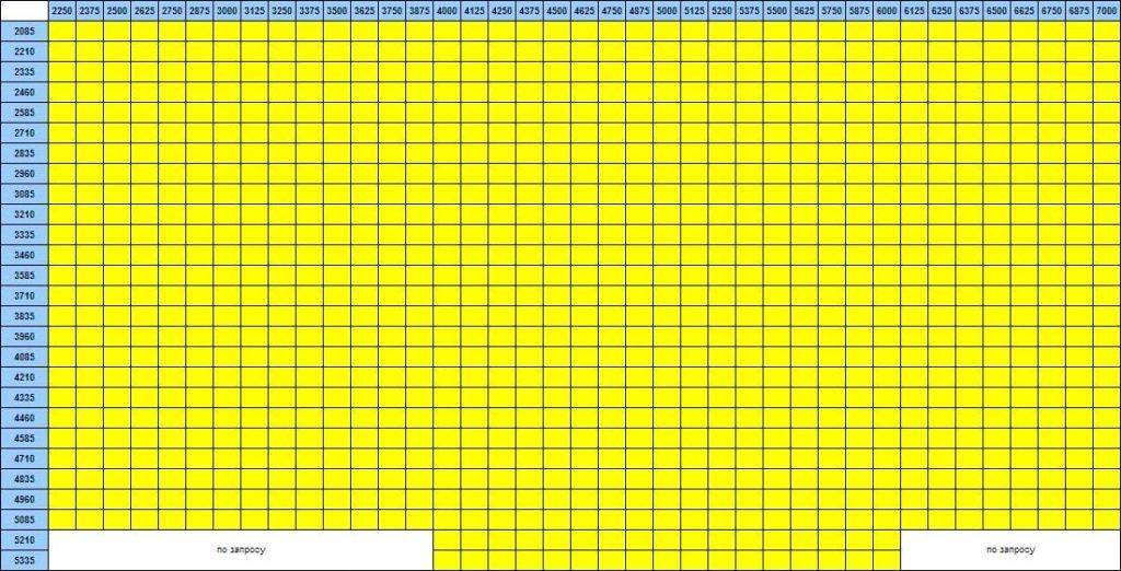 СПРАВКА: Шаг повышения ширины может составлять от 100 до 125 мм в зависимости от фирмы-производителя.