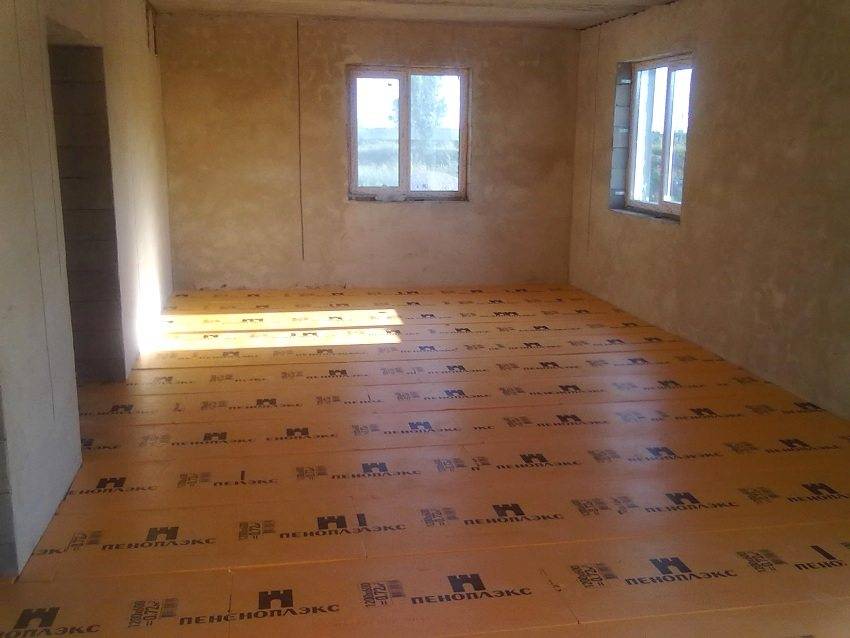 Чтобы утеплить пол пеноплексом, потребуется небольшая подготовка основания. Пол придется выровнять тонкой бетонной стяжкой.