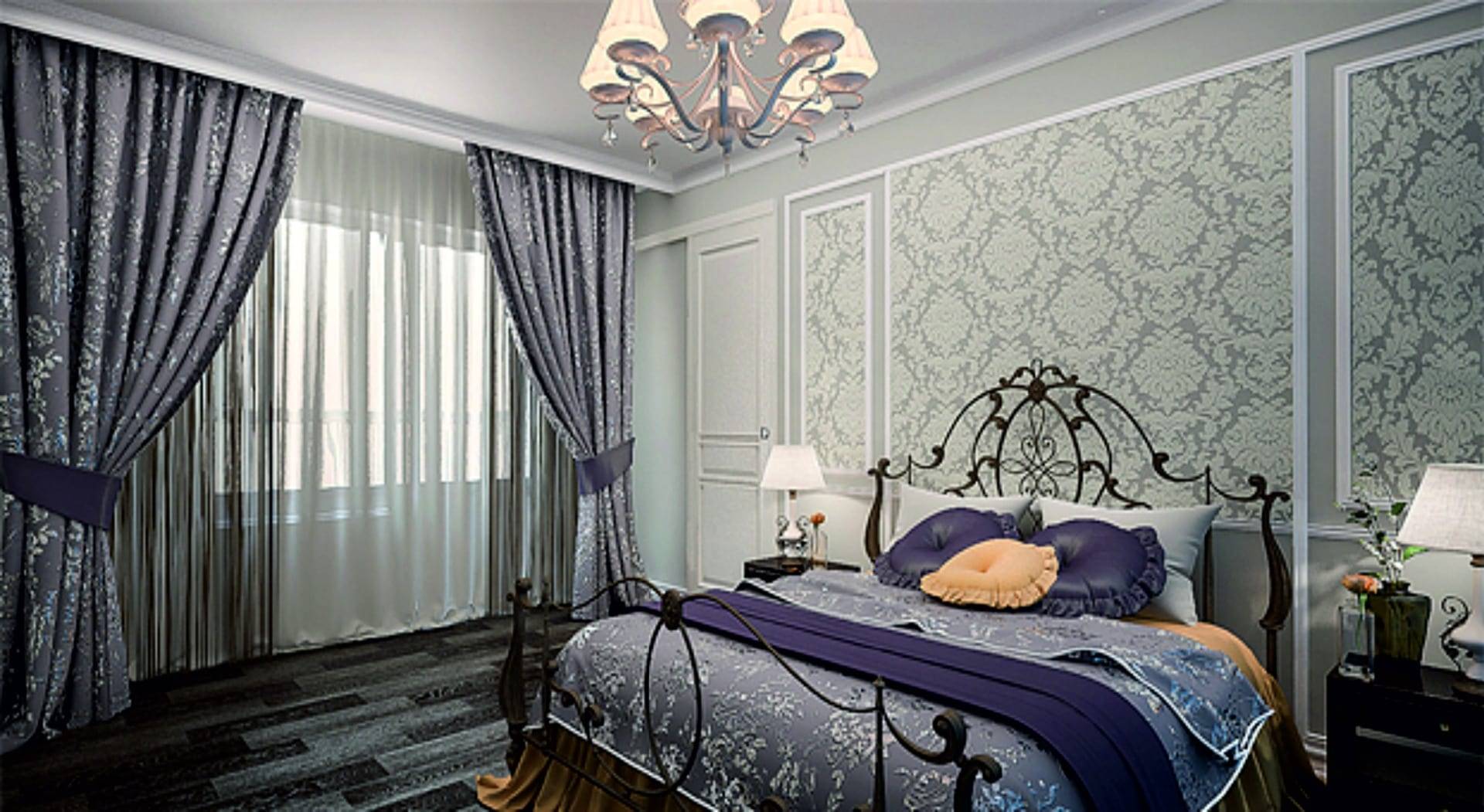 Третий вариант – простая прямая гардина без излишнего количества украшений. Она не будет привлекать к себе внимания и перекрытия будут казаться выше. Кроме того, располагать такой подвес нужно, как можно ближе к плоскости перекрытия. Очень хорошо вписываются в данные условия кованые модели, но, у них есть недостаток – высокая стоимость.