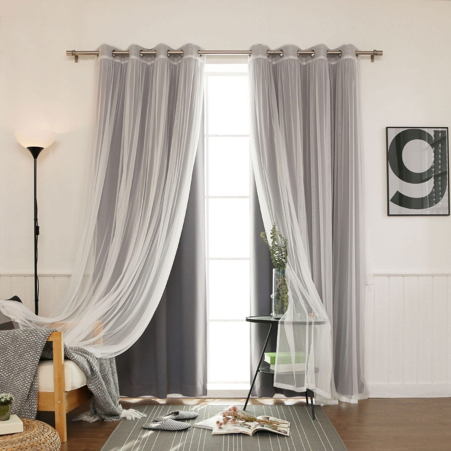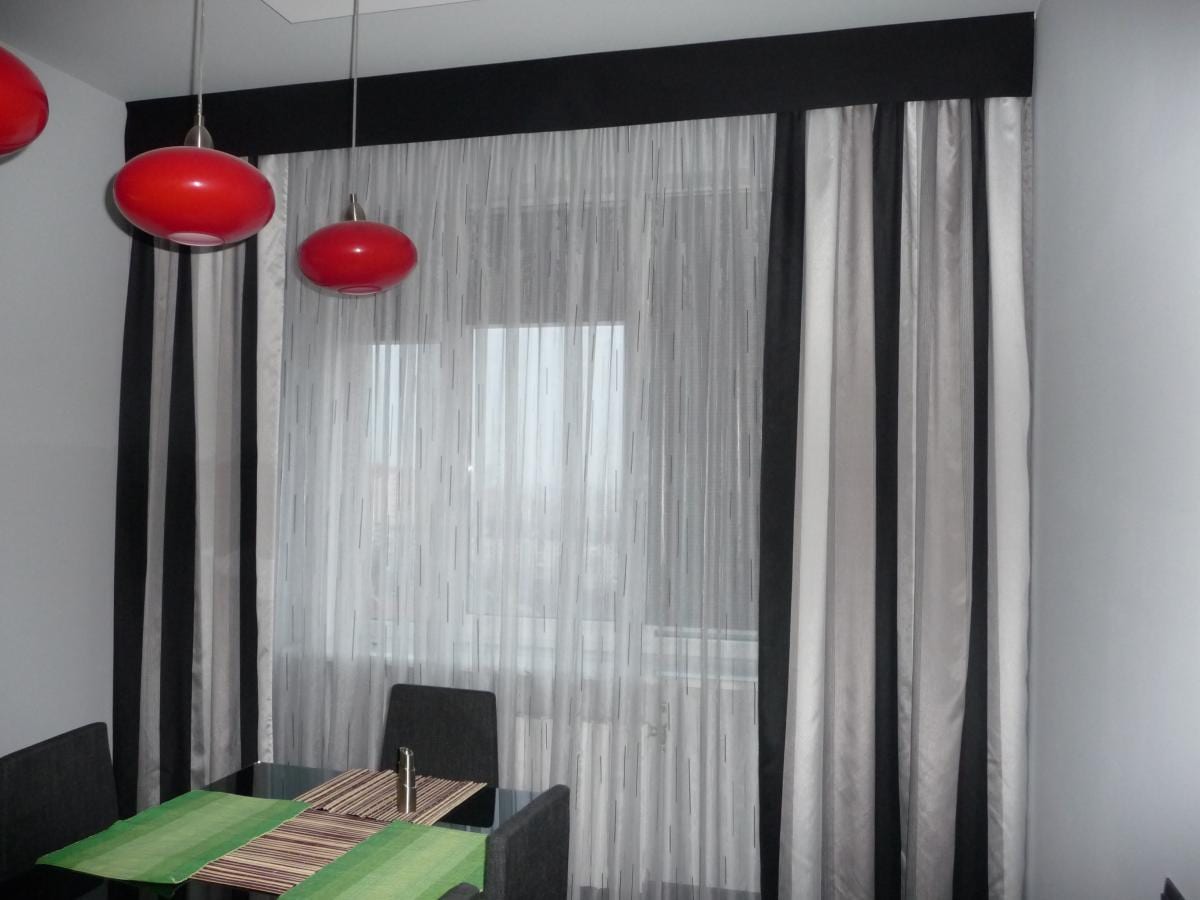 Лучше всего подходят ровные полотна или ткань, которую собрали в простые крупные складки. Четкие складки на гардинах помогают создать люверсы (это пластиковые или металлические кольца, которые вставляют в пробитые в ткани отверстия). Главное правило, люверсов должно быть четное количество на каждом полотне, тогда складки всегда будут смотреть в одну сторону.