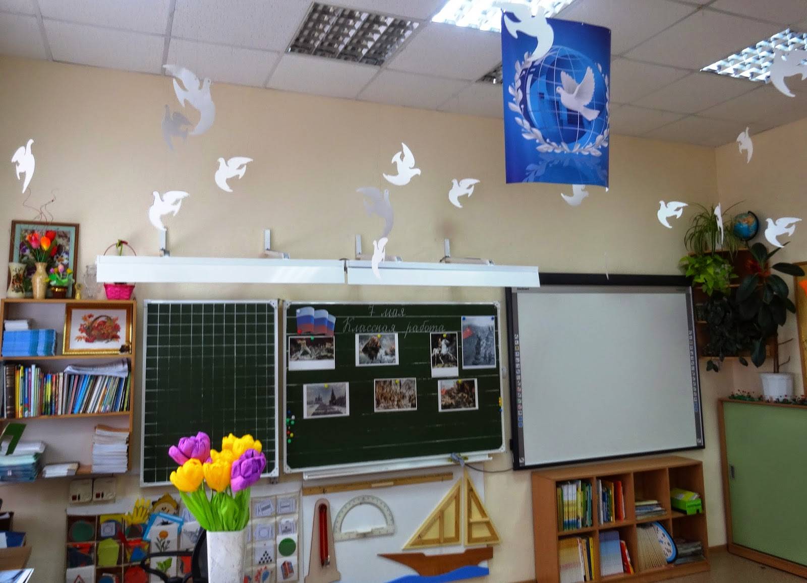 Подвеска из голубей (звезд, колокольчиков и т.д.) в классных кабинетах;