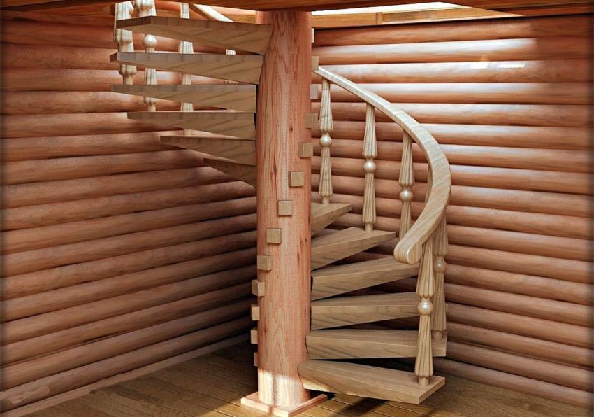 Винтовая лестница занимает минимум места и подходит для небольшого дома, когда нужно сэкономить пространство