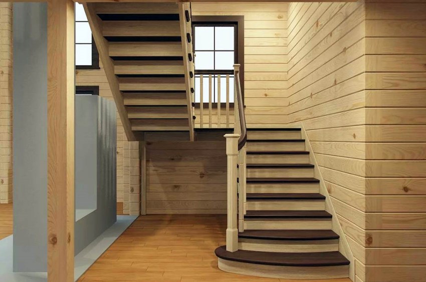 Дом из бруса, бревна или изготовленный по каркасной технологии чаще всего оснащается деревянной лестницей. Преимущества материала проявляются в следующем: