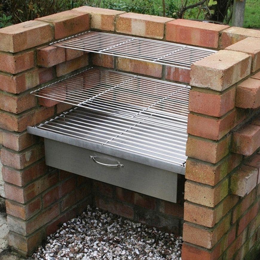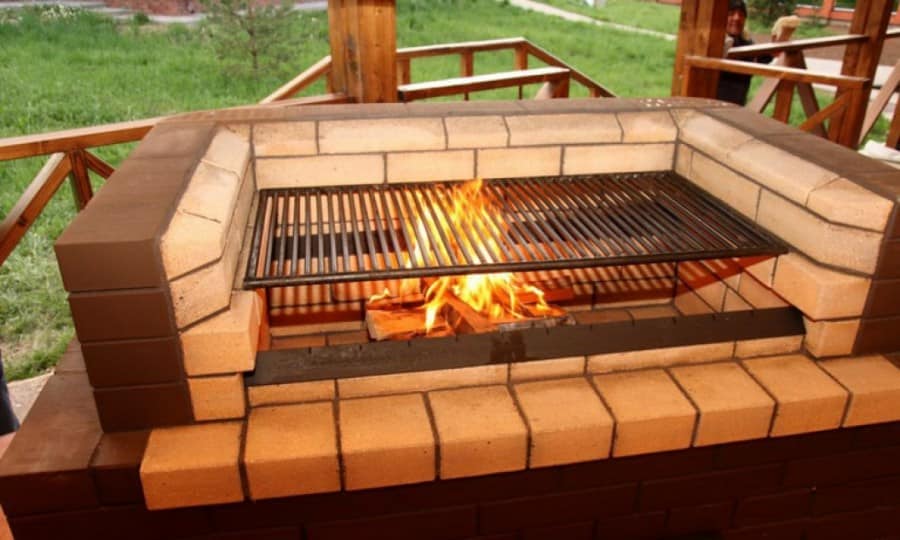Особых отличий нет – основание выложено кирпичом, стенки тоже. Отсутствует передняя стенка, что заметно упрощает удаление золы, решетка (решетки) опираются либо на выступающие из кладки кирпичи, либо просто на блоки, поставленные внутрь жаровни (как на фото выше).