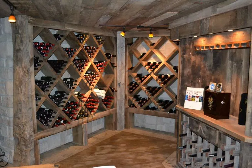 Особенно внимательно следует подойти к выбору дерева. Не рекомендуется использовать породы с ярко выраженным запахом, например, сосну или кедр. Такой вариант будет удачным для облицовки жилой комнаты, но в винном погребе запах впитается в пробку, и у вина появится привкус, который вряд ли сделает его лучше. Оптимальным выбором станет дуб, чья древесина веками применялась для оформления винных погребов.