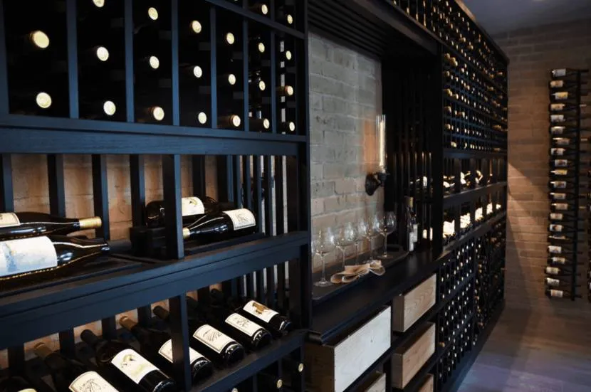 - Элементы хранилища – это винные шкафы, полки и стеллажи. Устанавливают их вдоль стен. При этом учитывают, как изменяется температура рядом с кондиционером или осветительными приборами.