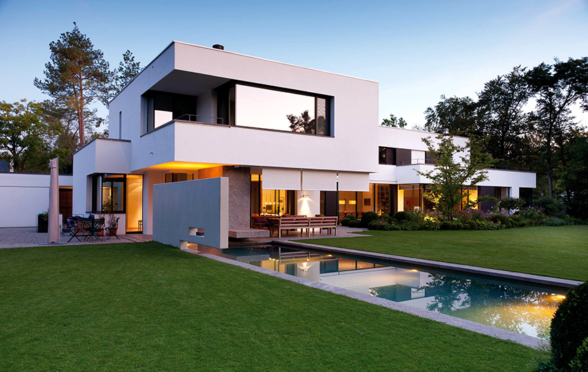 Каждый из вариантов имеет свое обоснование. Первый считается наиболее простым решением, так как он не только включает оформление дома, но и учитывает особенности ландшафтного дизайна. Готовые проекты современных загородных домов можно найти в многочисленных интернет-каталогах и на сайтах специализированных строительно-проектных организаций. Применение типового проекта позволяет удостовериться в качестве его реализации, познакомившись с уже готовой постройкой. Однако в таком случае теряется индивидуальность возведенного здания.