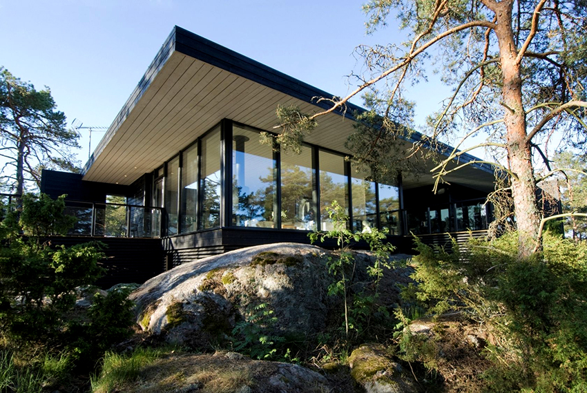 - Экологичность. При проектировании современных коттеджей преимущество отдают применению экологически чистых, натуральных материалов. К их числу относятся камень, металл, керамика, дерево, стекло и бетон.