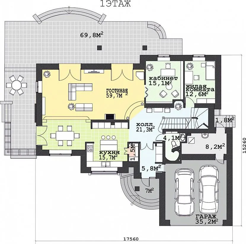 Вариант планировки элитного дома: 1 этажИсточник m-x.com.ua