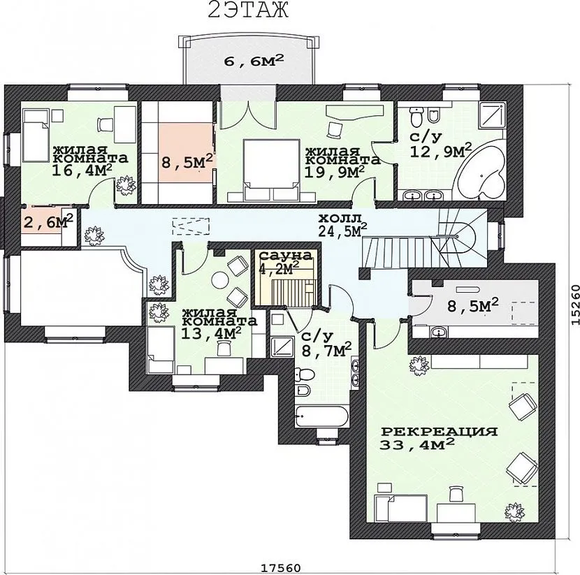 Вариант планировки элитного дома: 2 этажИсточник home-zagorod.ru