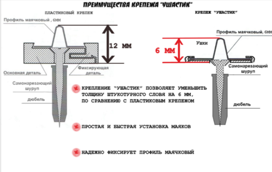 - В ряде случаев маяки спустя некоторое время могу отойти от стен под влиянием внешних физических факторов. Установленные в стену маяки при отхождении формируют широкие участки с трещинами, заделывать которые достаточно трудно.