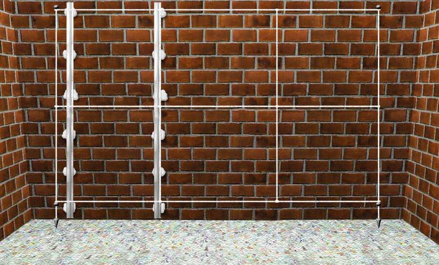 - Натянуть шнур между всеми углами стены и по диагоналям. Убедиться, что он нигде не упирается в стену.