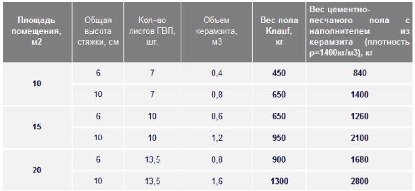 - вес полусухой стяжки на 1 м2, при ее высоте 50 мм, будет достигать около 100 килограммов (с помощью простых просчетов, можно вычислить реальные показатели, а указанную массу реально уменьшить, досыпав гранулы пенополистирола);