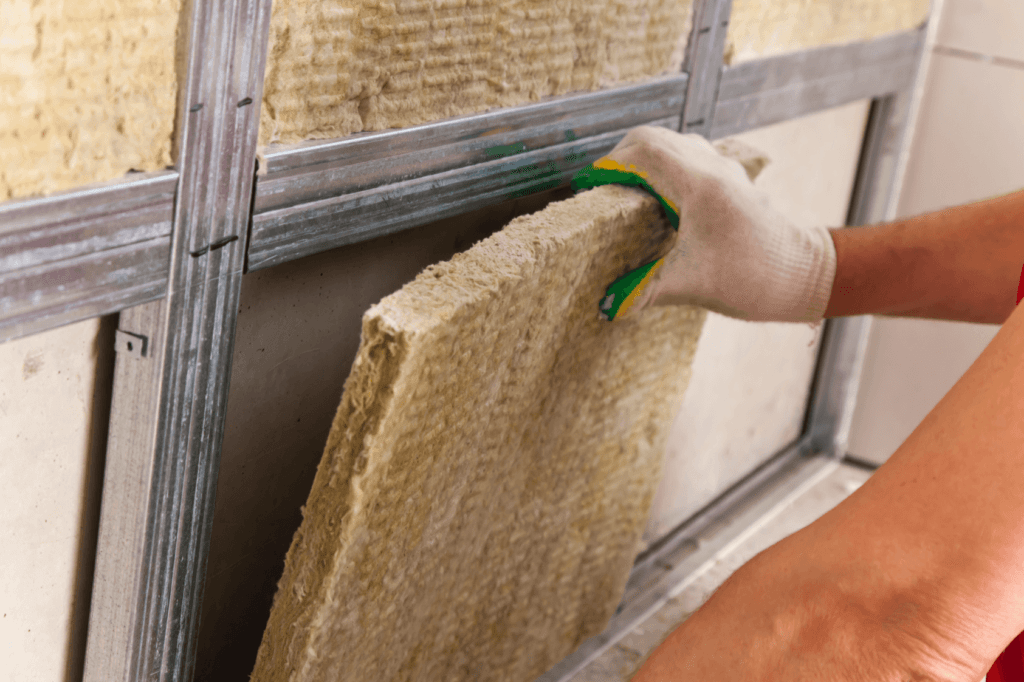 Заполните свободное пространство каркаса выбранным шумоизоляционным материаломШумоизоляция стен в квартире