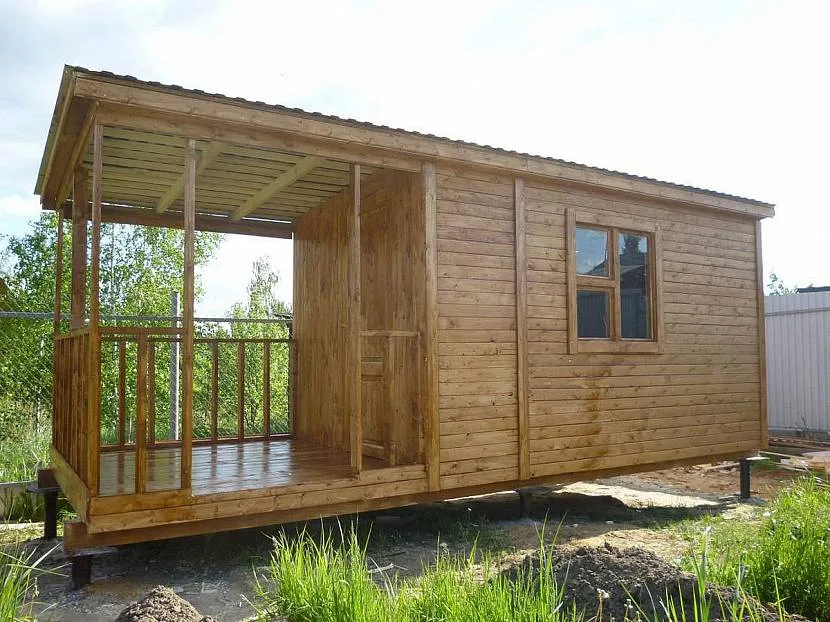 - Переделке бытовки в дом (баню). Если в будущем владельцы планируют перестроить временную конструкцию в постоянную, то опоры выдержат вес увеличенного и утепленного строения.