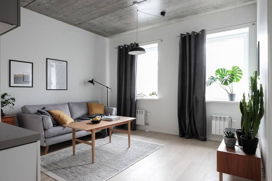 деревеный пол с небольшим ковриком – лучшее решение для оформления гостиной в шведском стиле