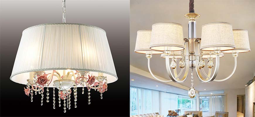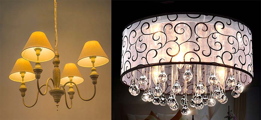 Выбранный материал должен обладать необходимыми вам характеристикам: безопасность, эстетичность, практичность, простота в уходе, прочность, долговечность и т. д. Кроме того, люстра должна соответствовать интерьеру комнаты. Также учитывайте размеры комнаты и высоту потолка. Если потолок низкий, то крепите светильник на планку, если же его высота от 3 м, то подойдет подвесная конструкция, которую нужно прицепить на крюк.