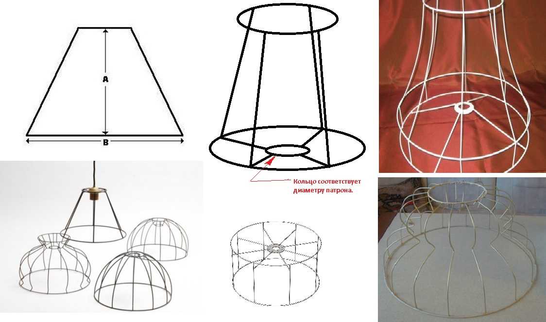 Если и этот способ недоступен, можно изготовить абажур без каркаса (есть и такие) или сделать каркас самостоятельно. Материал для изготовления каркаса для абажура своими руками это: проволока, древесина (деревянные или бамбуковые палочки, вырезанные специально элементы), пластиковые бутылки.