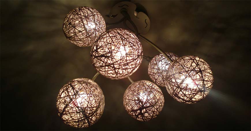 В последнее время очень модно стало такое украшения для люстры, как обмотка нитями.