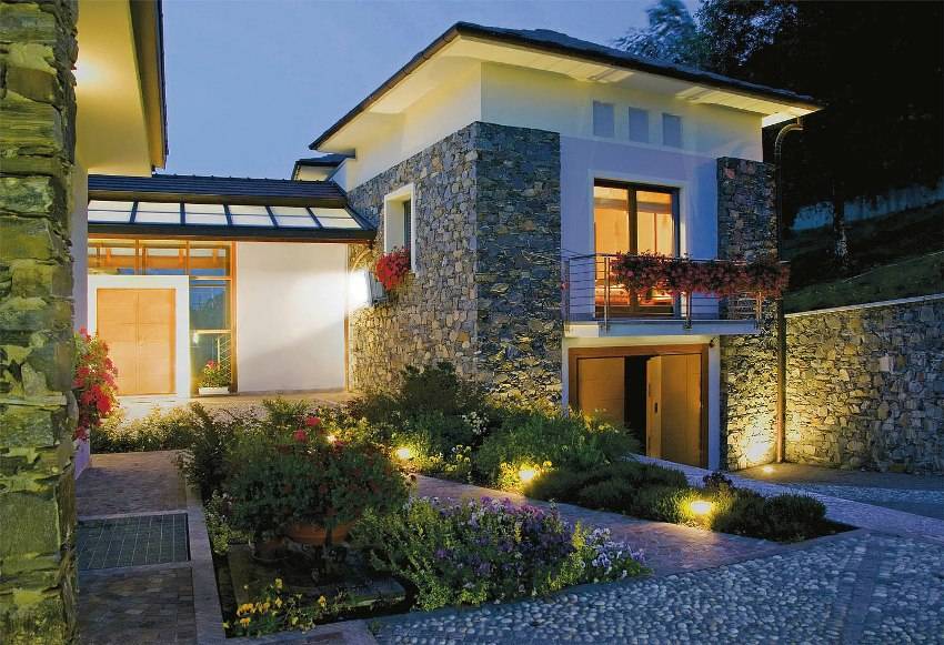 Помимо этого, для украшения подсветки загородного дома можно выбрать прожектора, которые светят, синим, желтым, красным и зеленым светом.