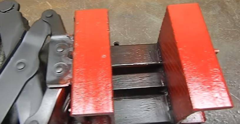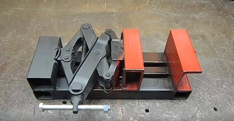 Достоинство самодельных тисков из домкрата в том, что человеку не требуется прилагать больших усилий, чтобы зажать заготовку. Для изготовления зажимных тисков из ромбовидного домкрата выполняются следующие манипуляции: