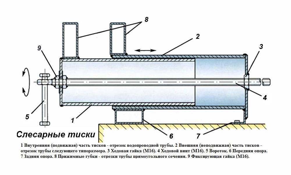 Губки сделаны таким образом, что всегда можно крепить разные накладки: деревянные, пластмассовые или из другого мягкого материала. Рассмотрев принцип работы и устройство, вполне можно спроектировать самодельные тиски