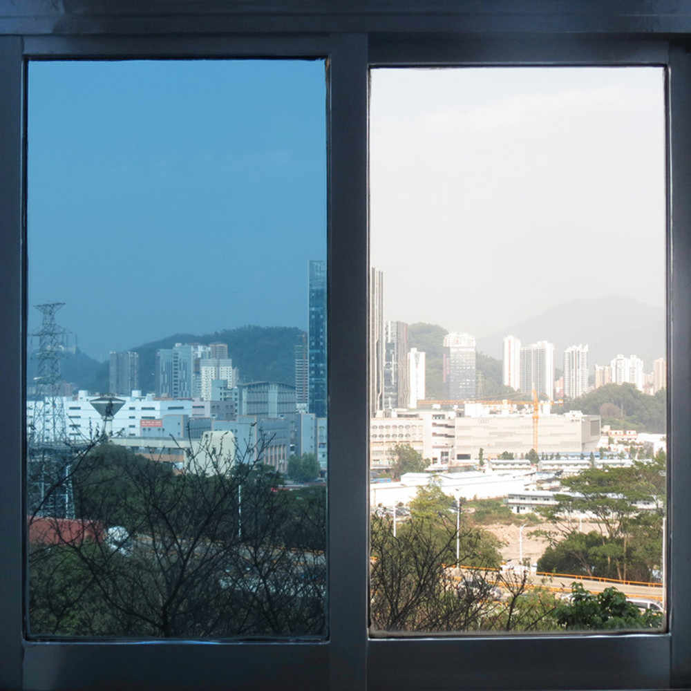 Светоотражающую пленку можно подобрать под свое зрительное восприятие. Коэффициент отражения света может быть в пределах 5 – 60%. Зеркальная тонировка удобна, если вы не хотите быть объектом созерцания с окон и балконов соседнего дома. Светоотражающая пленка имеет высокую безопасность, в случае если стекло разбилось.