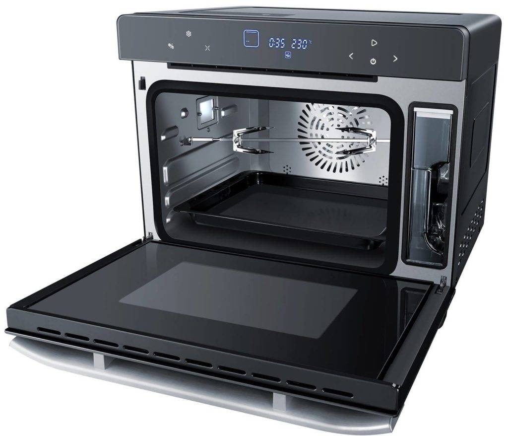 Модель обладает вместительной камерой объемом 40 л, что позволяет одновременно готовить сразу несколько порций, располагая их на 4 уровнях. Управление готовкой, смена программы и настроек осуществляется с помощью сенсорной модели и простого круглого переключателя. Что касается встроенных программ, прибор имеет 31 режим работы, позволяющих приготовить всех видов продуктов, от традиционных повседневных блюд, до изготовления нежных йогуртов. Каждую программу можно откорректировать, изменяя время готовки или уровень нагрева, настраиваемый от 50 до 220 градусов. Средняя стоимость составляет – 29 900 руб.