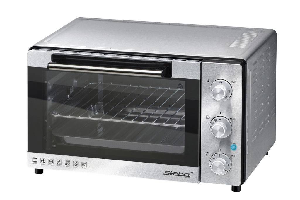 Модель электрической электропечи, одинаково подходящей для домашнего и профессионального использования. Steba DG 40 отличается высоким качеством сборки, а также обладает высокими теплоизоляционными свойствами. Устройство отличается широким функционалом, в наличии 49 встроенных программ, в том числе функция пароварки, нижней и верхний нагрев, конвекция. Благодаря заявленному объему камеры (40 л) Steba DG 40 способна заменить собой полноценную духовку. Максимальный уровень нагрева составляет 230 градусов. Вертел вмещает 2 тушки птицы. Управление простое, сенсорное, дополнительно печь LED-дисплеем, электронным таймером и термостатом, а также освещением внутри камеры. В комплекте к устройству идут решетка, противень, вертел и поддон. Средняя стоимость составляет – 38 716 руб.