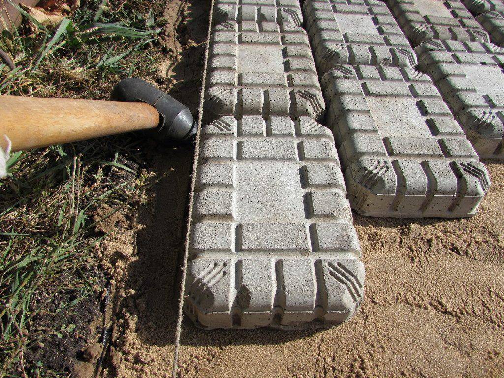 - В случае если в конце замощения нельзя установить бордюрный камень, то два последних ряда плитки выкладываются на бетонную смесь.
