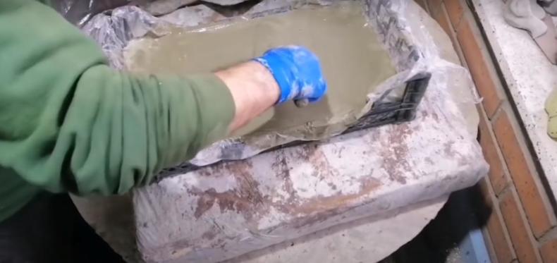На заключительном этапе перемешивания бетонного раствора при необходимости добавляется ещё вода. Заливка чаще всего осуществляется в специальные смазанные силиконовые формы или пластиковые контейнеры. При необходимости можно выполнить своими руками многоразовую деревянную опалубку.