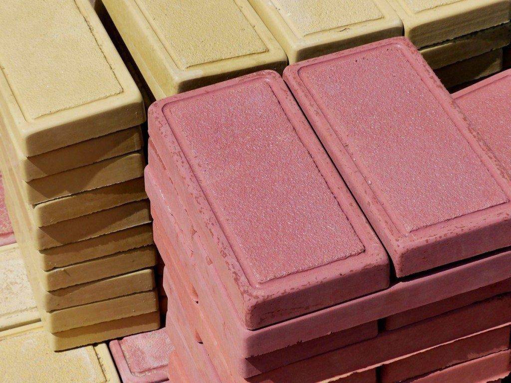 Важно, чтобы красящие пигменты были светостойкими. Учитывая высокую цену красителей (от 1500 до 8600 тыс. руб.) пользуется спросом двухцветная тротуарная плитка