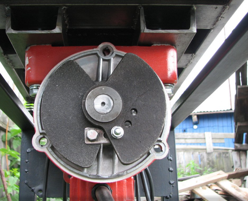 Амплитуду движения потребуется отрегулировать. Для этого в одном из блинов готовится одно, а во втором – 3-4 отверстия (см. фото), через которые они соединяются между собой с помощью металлической полосы 2х6 см и болтов.
