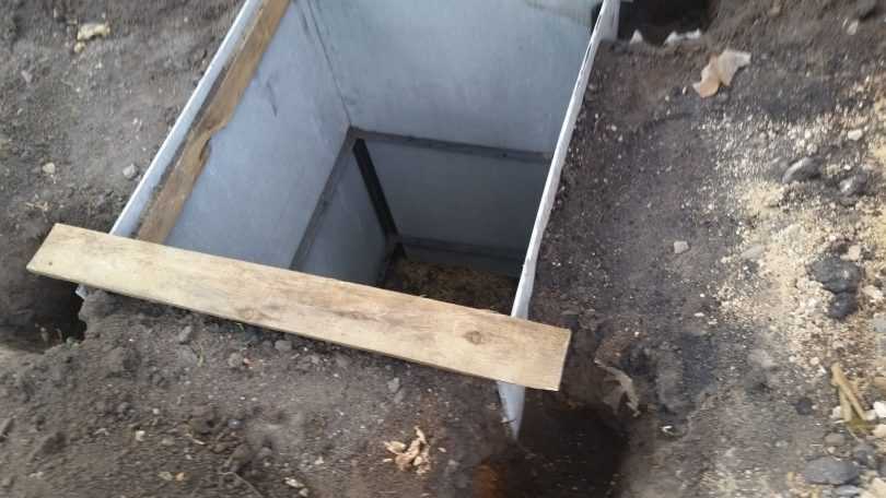 Выкапывают (бурят) квадратную или круглую яму в почве на глубину 2 м. Грунт выбирают, на дно насыпают дренаж – смесь щебня с песком