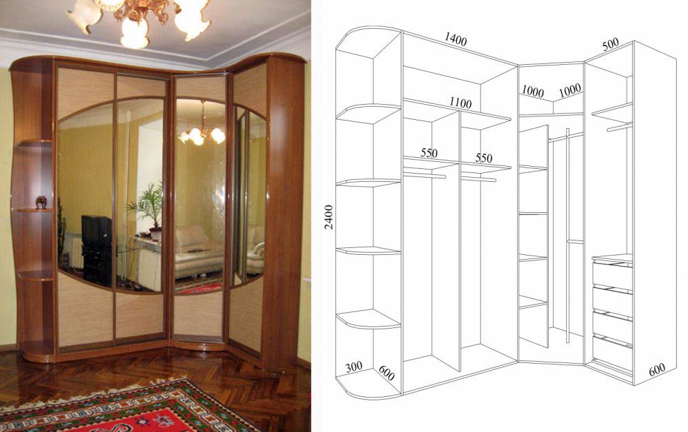 Типовые размеры угловых шкафов
