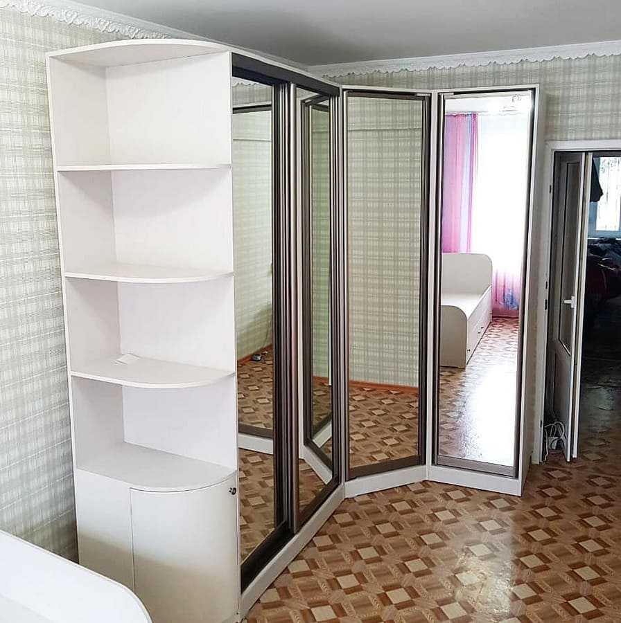 Это мебель, которая заполняет собой угловое пространство в комнате. Секции располагаются вдоль обеих прилегающих стен. Створки у шкафа-купе передвигаются по встроенным полозьям на специальных роликах.