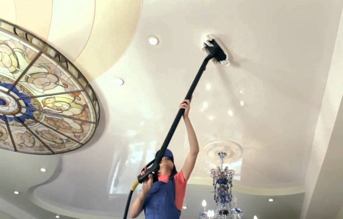- Ухаживать за натяжными матовыми потолками следует с помощью водяного пара. Манипуляцию легко проводить специальными пароочистителями.