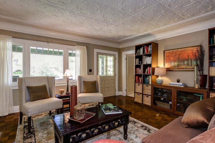 Большой выбор плитки позволяет облицевать потолки в соответствии с выбранным стилем и цветовым решением.