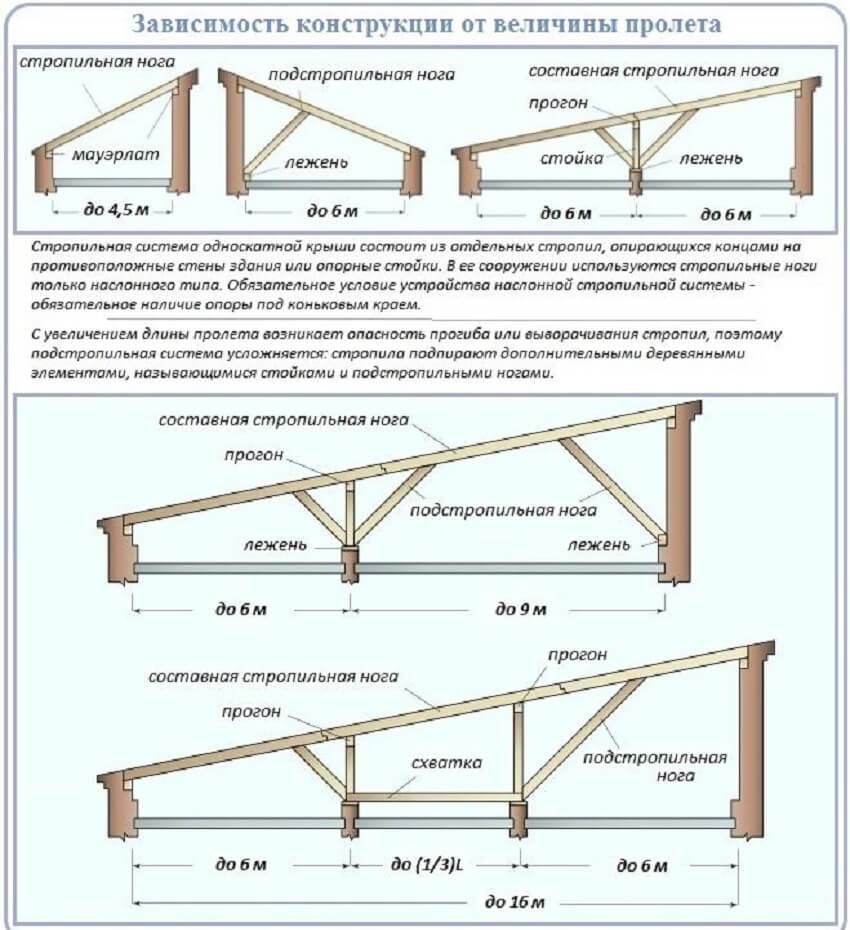 Стропильная система односкатной крыши своими руками ‒ Угол наклона