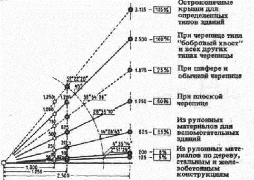 Какой угол наклона односкатной крыши (двускатной, шатровой и так далее) принят, может указываться в: