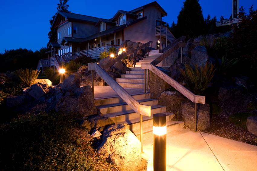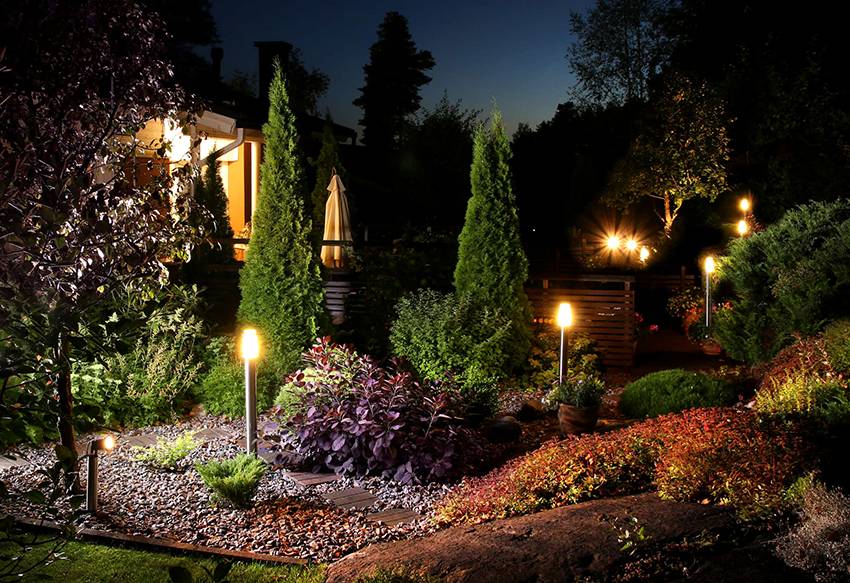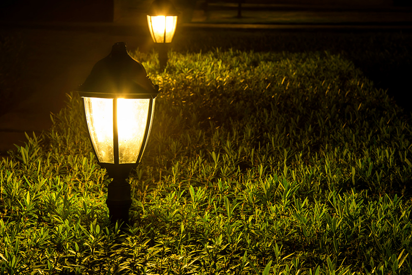Светильники, установленные на столбах, широко применяют для территорий частных домов