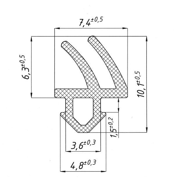 В данном случае уплотнитель сделан из вулканизированного каучука. Основной компонент материала – сажа, поэтому цвет этого варианта только черный. Несмотря на такой не самый приглядный оттенок, уплотнитель из резины довольно долго служит — около 10-20 лет.