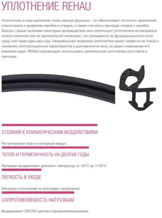 Уплотнитель Рехау отличается специфическим рядом особенностей, которые также являются и достоинством: