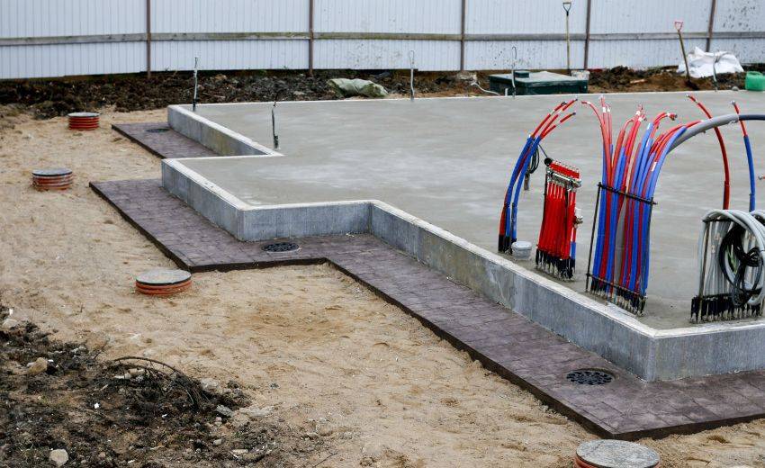- по периметру основания необходимо оснастить ребра жесткости не меньше, чем 30×30 см. Они станут основанием под несущие стены;