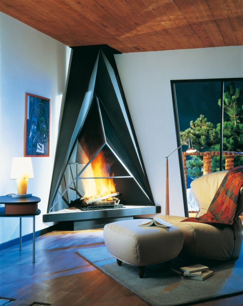 Треугольный дровяной камин