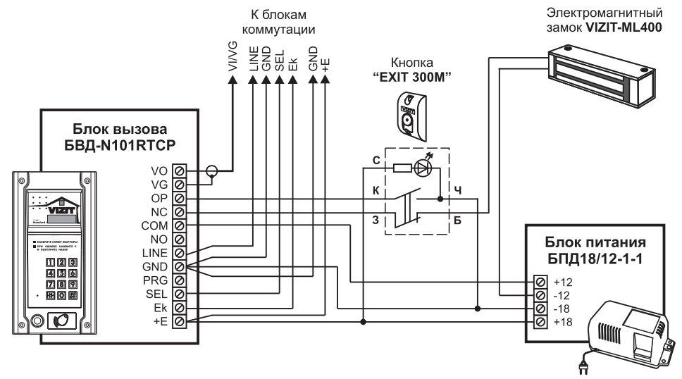 Это самый распространенный вариант. Замок и домофон подключают вместе, что дает возможность открывать замок с помощью кода, кнопки на панели вызова и электронного ключа. К внешнему блоку от наружного при установке аудио домофона ведет 3-жильный кабель. Для подсоединения видео домофона применяют 4-жильный кабель.