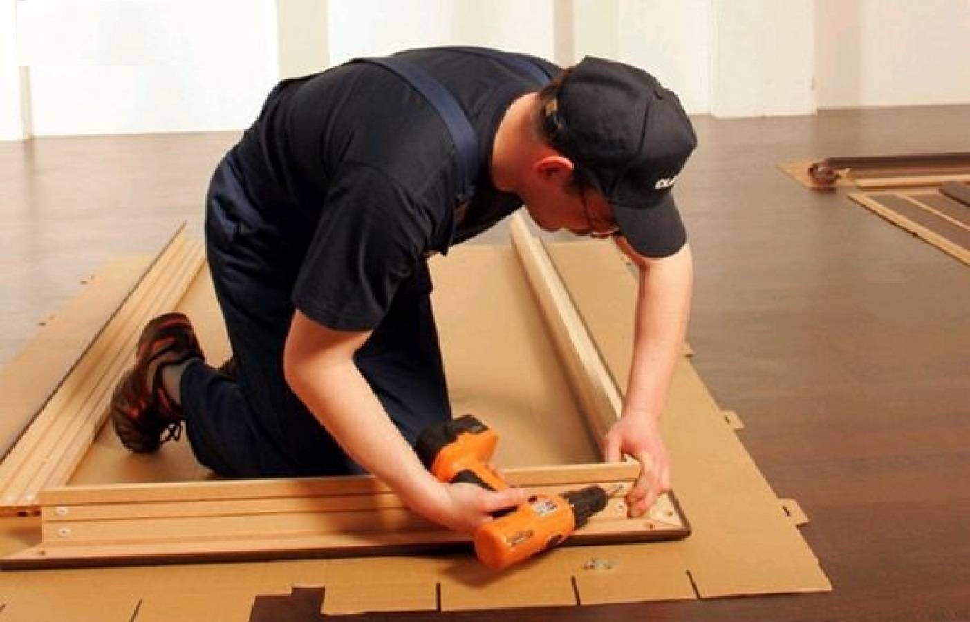 - Собрать дверной короб. Составные части необходимо разложить в нужном порядке, учитывая при этом то, в каком направлении будет открываться полотно.