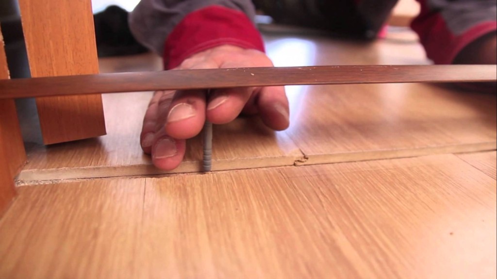 - Зафиксировать порожек шурупами.